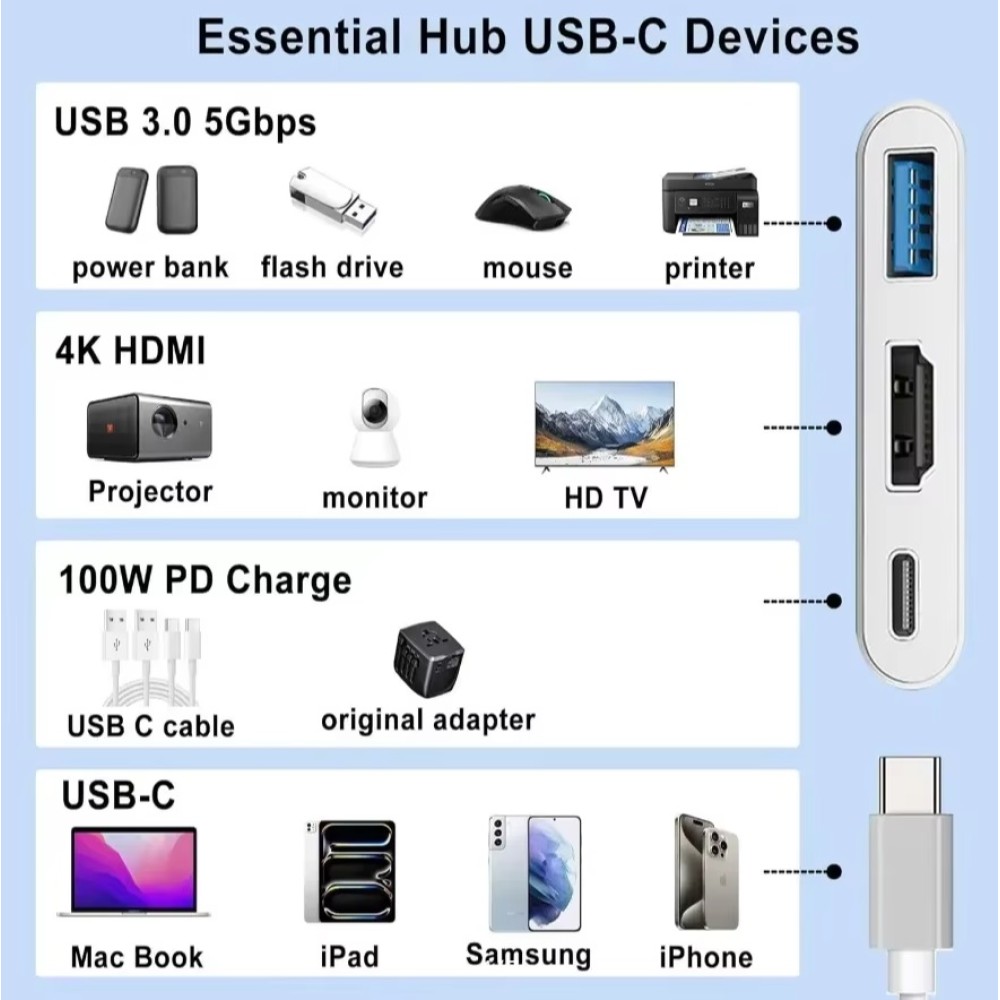 3 в 1 USB Type-C хаб с поддержкой 4K HDMI, Type-C USB 3.0 для iPad Pro 2018 2020, Huawei, Samsung S8 Plus, планшетов и аксессуаров для ПК