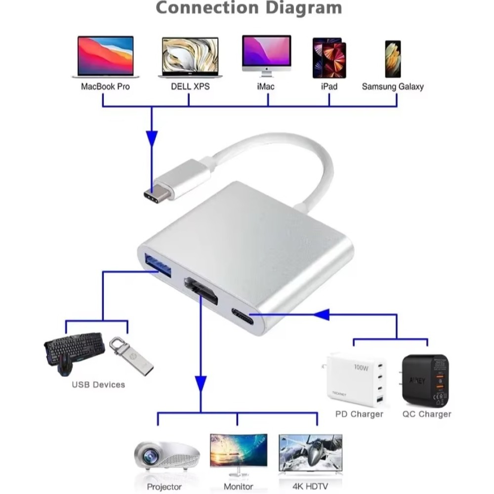 1 x Адаптер Type-C на HDMI-совместимый / USB 3.0 / Type-C